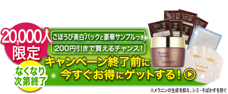 ※2:ビューティーオープナージェル リンクル&ホワイトの効能・効果のこと(ハリを与える、シワ改善、シミ・そばかす予防、肌あれ予防)
